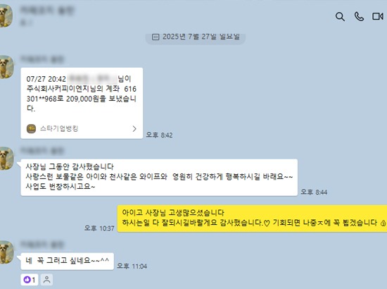사장님 그동 감사했습니다. 꼭 행복하시고 종종 연락드리겠습니다!!